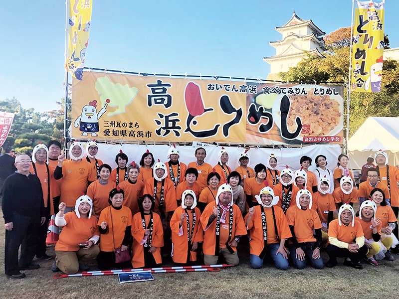 高浜とりめし学会は、「とりめしでまちを盛り上げよう」と2010年に発足。卵を産まなくなった鶏の歯ごたえのある鶏肉を使った甘辛い味の混ぜご飯、「高浜とりめし」でまちおこしに取り組む団体です。活動は、高浜市の良いところを唄ったテーマソングによるPR、親子とりめし教室の開催、福祉施設へのとりめし寄贈などにより、高浜市民のソウルフード「とりめし」を通じて高浜市をPRしています。